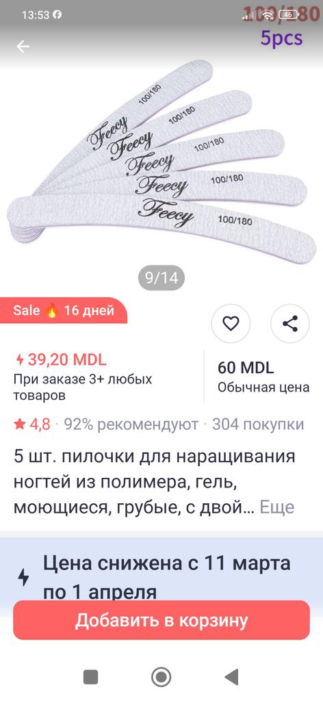 Якість ужасна...Для того,щоб підпиляти один раз нігтики однієї руки,доводиться використати цілу пилку,бо вона осипається,погано пиляє... Я не задоволена якістю та не рекомендую!!!Зря потрачені кошти!