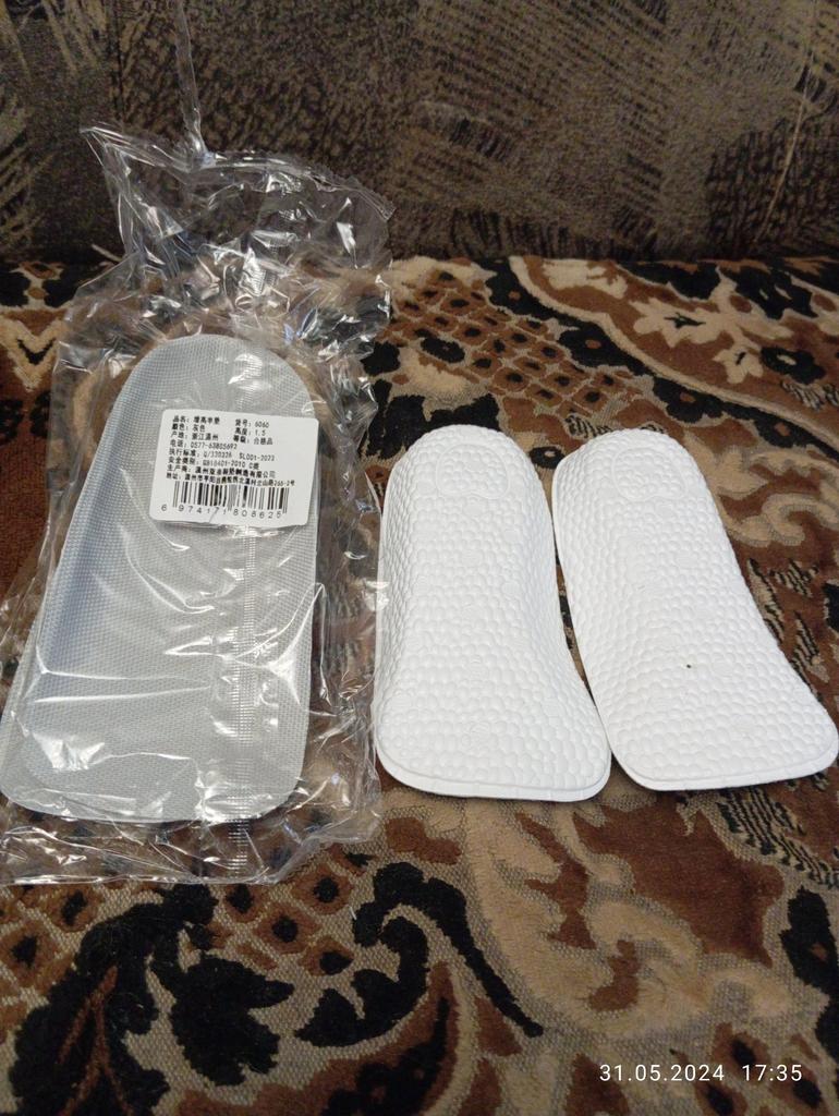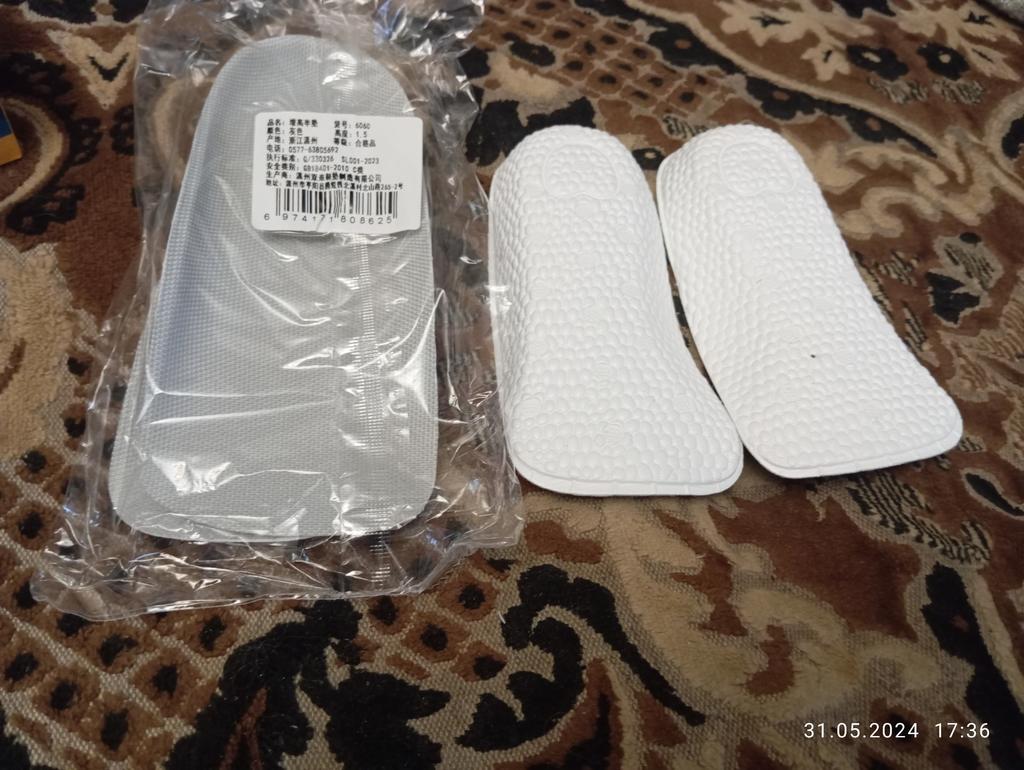 Замовлення прийшло вчасно в загальній посилці, об'єднане з іншим замовленням. Устілки гарної якості, якісні анатомічної форми, кожна устілки зроблена під праву та ліву ногу. У мене вкорочення правої ноги та пласкостопія. Поклала праву устілку у закрите взуття, зручно ходити хребет та таз на рівнялися. За декілька днів звикла до вкладиша, хребет на рівнявся вся важкість та біль під час ходьби зникла. Дуже зручні та якісні устілки щиро дякую продавцю та Joom, продавця та товар рекомендую.