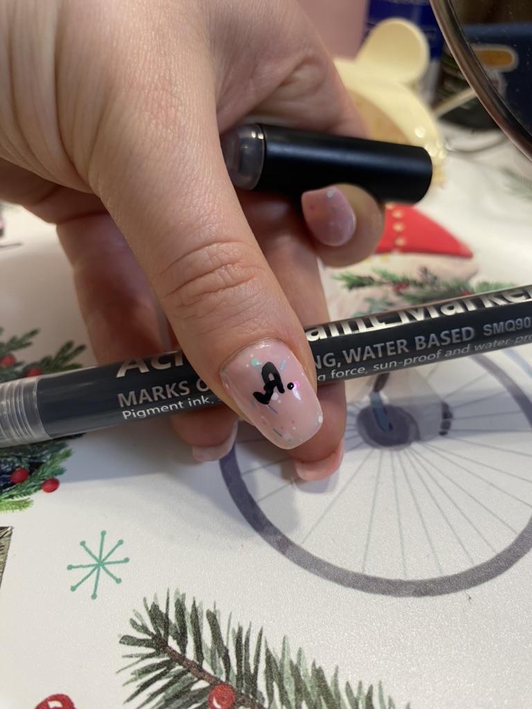 Акрилова фарба у вигляді фломастеру 🖋️ Вибрала чорний класичний колір. Нею можна малювати будь-де, навіть робити манікюр, написи або малюнки, підмазати скол де-небудь. Вона на водній основі, після повного висихання витирається тільки спиртовмістким засобом. Обʼєм невеликий, але я брала для манікюру, вистачить надовго. На самому фломастері показано спосіб першого використання у 5 діях 👌 Корисне придбання, рекомендую ❤️