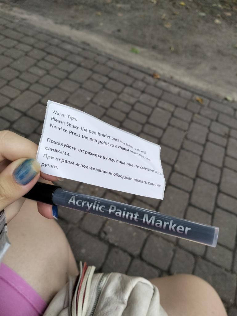 Олівець з акриловою фарбою (акриловий маркер) 💅🌸 Чудове рішення, щоб швидко намалювати якийсь простенький малюнок чи візерунок на нігтиках. Треба зазначити, що маркер добре малює і на картоні теж. Тож ним можна підписати листівку. У продавця більше десятка варіантів кольору. Я обрала срібло. Малюнок зроблений таким маркером на нігтиках треба перекривати топом інакше він швидко зітреця. З тіпсів маркер без проблем стерся ватним диском змоченим у спирті. Спосіб використання. Перед використанням маркер потрібно декілька разів струсити та декілька разів натиснути на стержень. Якщо будете малювати по гель-лаку, то попередньо треба зняти липкий шар. Малюємо візерунок, даємо висохнути 2-3 хвилини та перекриваємо топом. Продавець вклав інструкцію англійською та російською мовами Об'єм 3 мл Маркер сподобався. Рекомендую і продавця і товар 😉🛍️ Товар отримала за 32 дні в об'єднаній посилці 🚚 ( Замовила два товари в одному магазині, продавець вклав все в один конверт.) Трек відслідковувався повністю . Про прибуття у пункт видачі сповістили sms 📳. Пакування: повітряно-пухирчатий конверт та індивідуальна упаковка. Товар без браку та дефектів, без стороннього запаху. Якщо інформація була корисною ставте вподобайку ❤️😘 Всім вдалих покупок та швидких доставок 🛍️☺️✈️🌸 І пам'ятайте, що кожна жінка зірка тож сяйте яскравіше 🌟. PS: Всіх кого цікавлять промокоди на 10-15% запрошую до свого Телеграм-каналу: Olena.joom.thebest 🎁💙.
