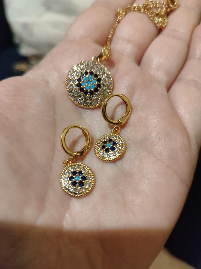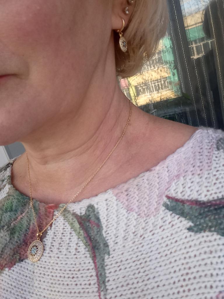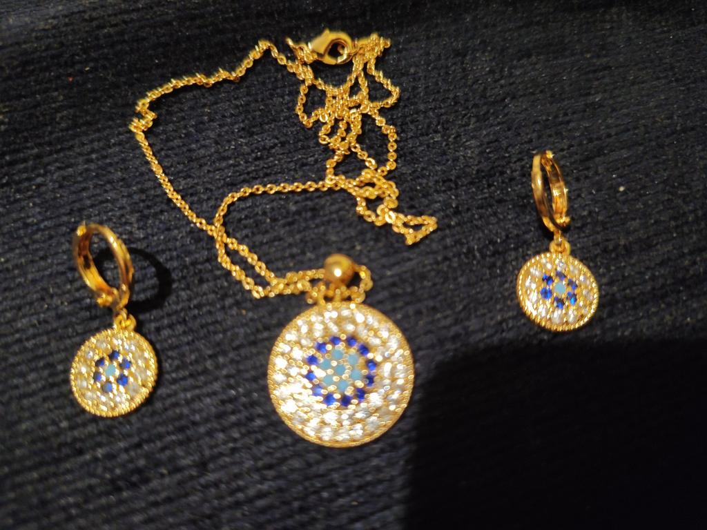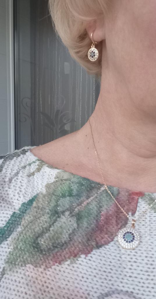 Набір дуже гарний. Пакування могло б бути кращим. Сережки не мають застібок як таких, щоб заходило за різьбу. Просто закриваються й все. Але камені переливаються дуже гарно і взагалі набір виглядає дуже яскравим.