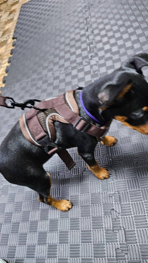 Шлейка справді анатомічно правильна. На таксу 7 кг (шия 30, груди 47) підійшла ідеально. Якщо на одяг, є можливість збільшити обсяг. Собака у захваті, зараз замовимо ще одну в іншому кольорі.