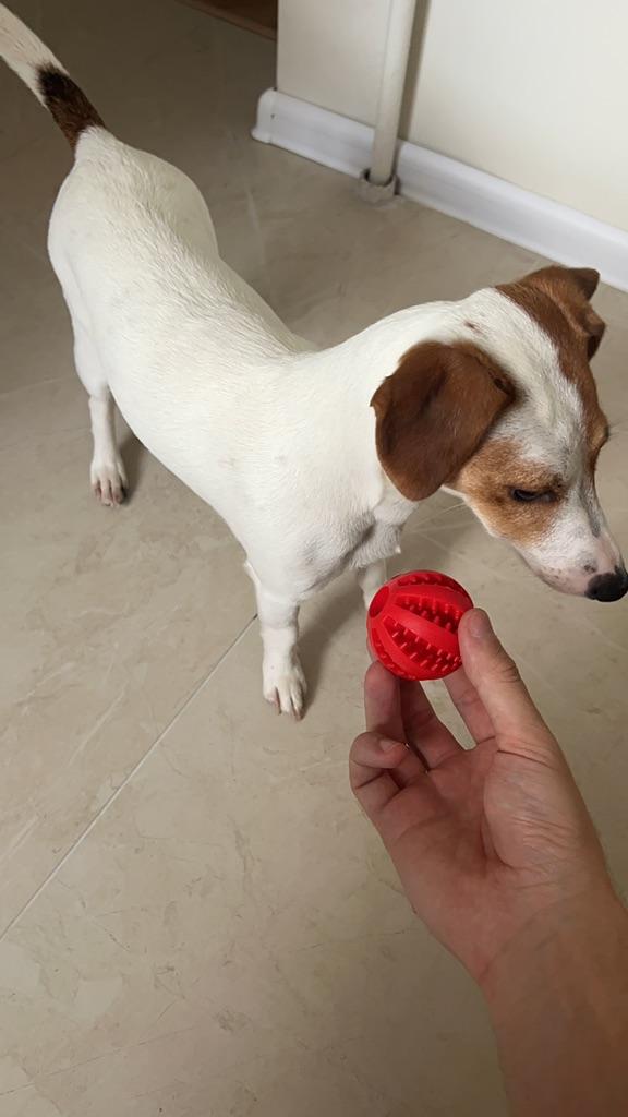 Получила замовляння вчасно, мʼяч трохи мʼякший ніж хотілося б, для мого песика на тиждень і він вже загриз його. Оле опис і ціна якісь на рівні.