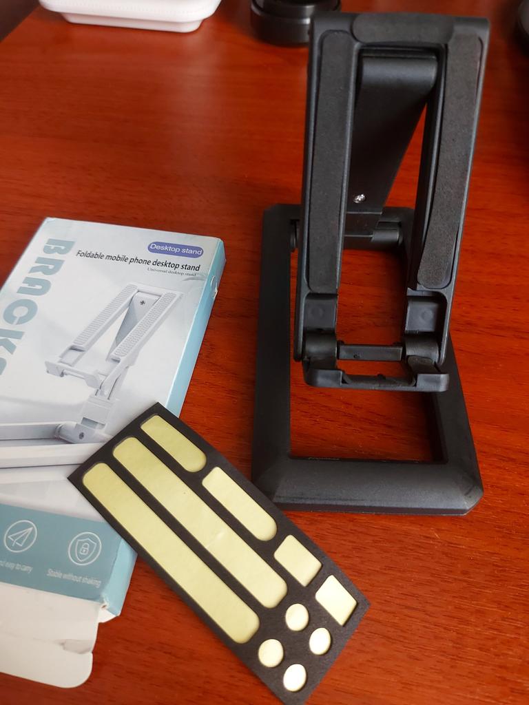 До самої підставки додають наклейки, щоб не ковзала по столу і телефон не випадав. Головне правильно без зусиль розкрити цю конструкцію самої підставки, бо можна відкрити не в той бік та зламати. Загалом все добре. Доставці респект! За 18 днів.