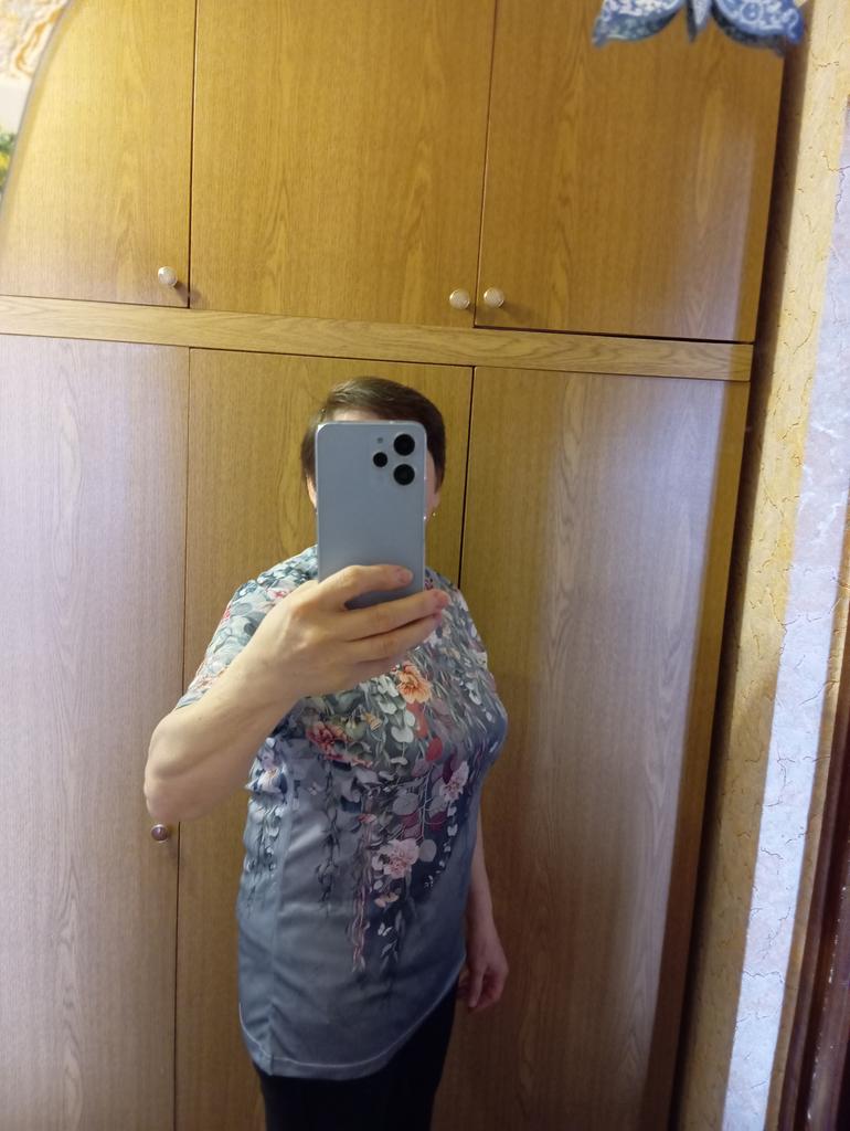 Чудова блузочка, не х/б,але дуже приємна до тіла. На 48-50розмір та об'єм грудей до 104см. Я задоволена покупкою, якісно прошита горловина. Рекомендую до покупки. Дякую продавцю та Джуму за швидку доставку.