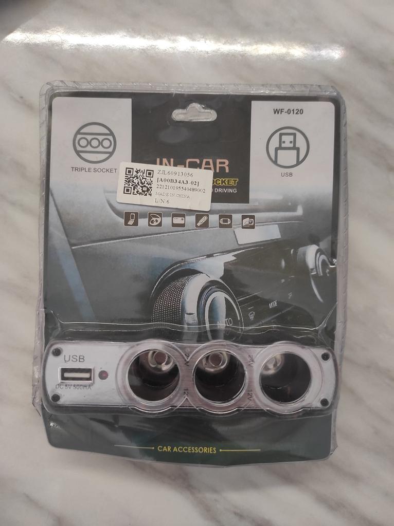 (Adapter)1 USB зарядний пристрій і розгалужувач автомобільного прикурювача з 3 гніздами