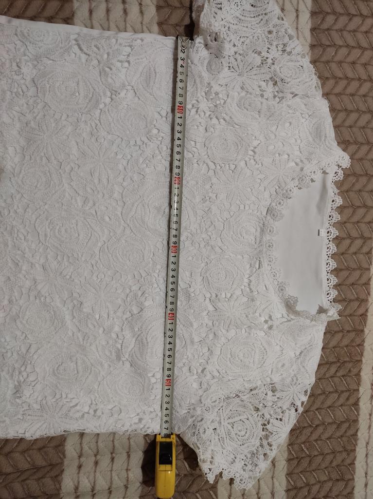 Доброго дня.Кофтинка на 5 з 10.На 50-52(XXL) велика. Низ під мереживом і з заду синтетика. Треба продавати обо перешивати.
