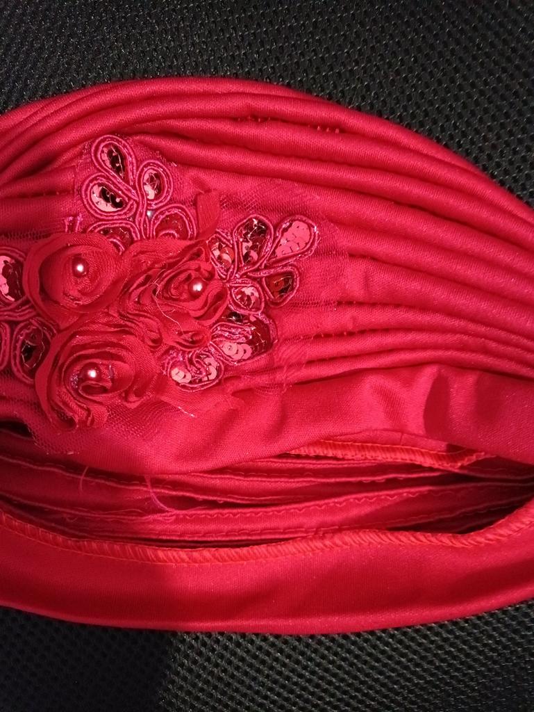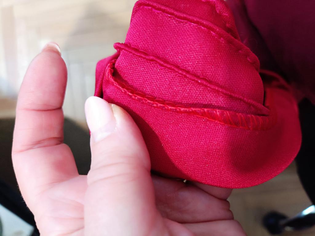Синтетична тканина, аж блистить, тонюсінька, не зрозуміло, на яку погоду. Гарна аплікація, але не знаю, чи одягатиму. Слово "капелюх" в описі абсолютно зайве, не відповідає. Тонесенький головний убір "для краси", можливо, десь у різдвяній виставі "Вертепі" можна буде використати, для костюму одного з трьох царів... Треба буде комусь передати