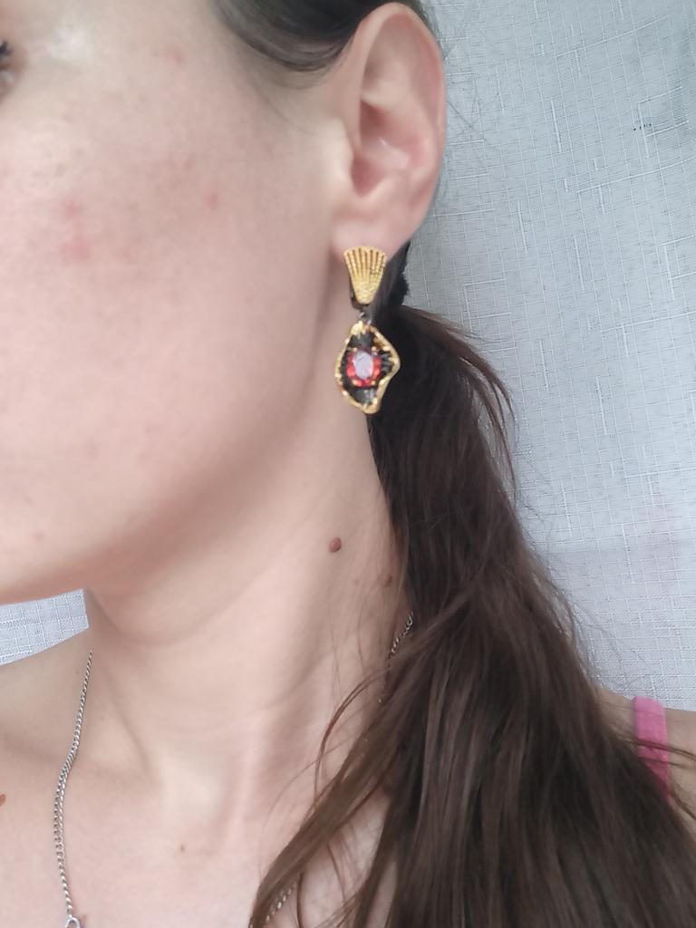 Розкішні перебільшені сережки з рубінами для жінок Високоякісні чорно-золоті сережки Подарунок на ювілей Ювелірні вироби для вечірки