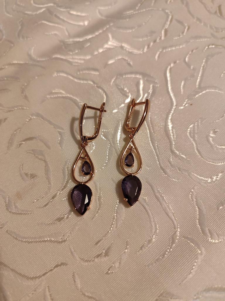 Довгі сережки-підвіски з фіолетовим цирконом у формі краплі для жінок Модні аксесуари золотого кольору Весільні прикраси