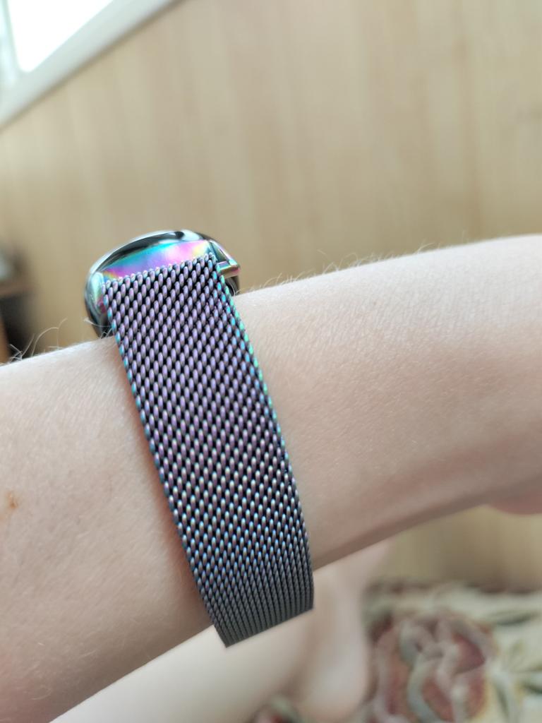 Поки улюблений браслет. Подобається майже все, єдиний мінус - що краями зачіпається з дрібні нитки чи волоски. Терпимо, але не завжди приємно. Іноді треба вичищати краї від ниток і берегти від нього улюблені светри. За місяць носіння потьмянів посередині, але це не дуже помітно.