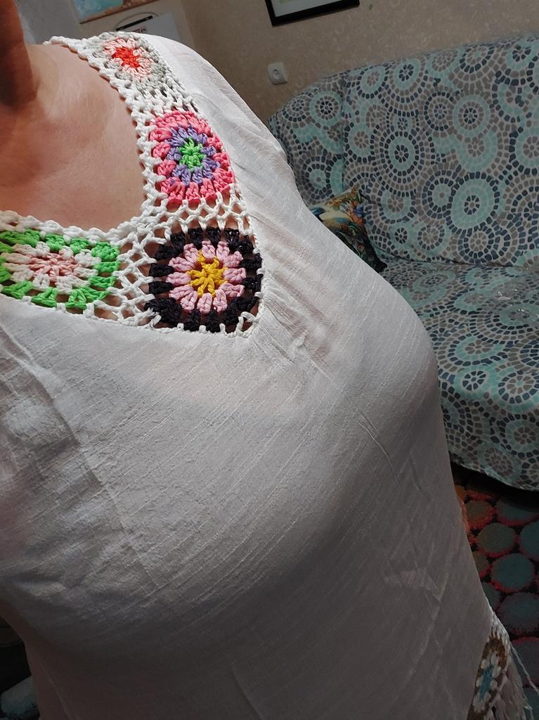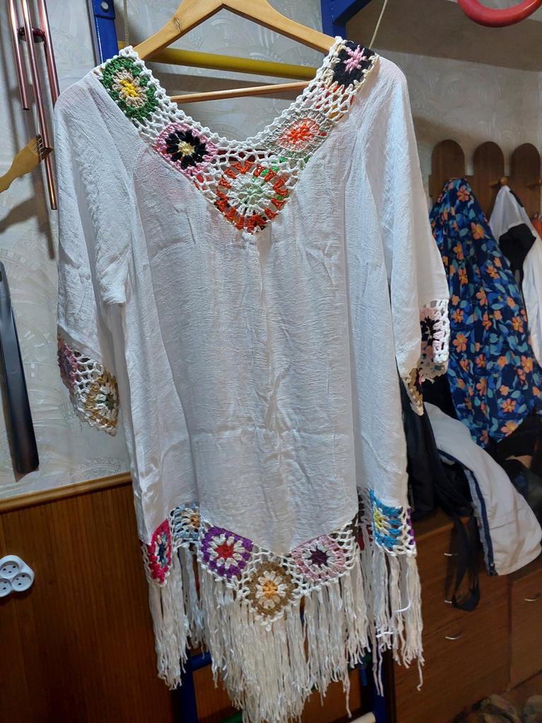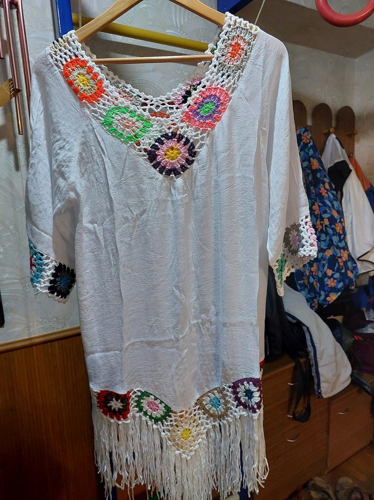 Чудова туніка. Насичені і гарні кольори. Як раз для пляжу. На ОГ 112 сіла без обтягування, але й не висить. Дякую за наклейки для нігтів.