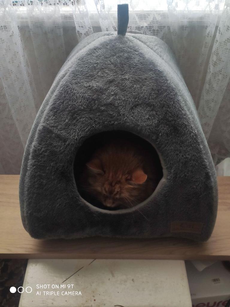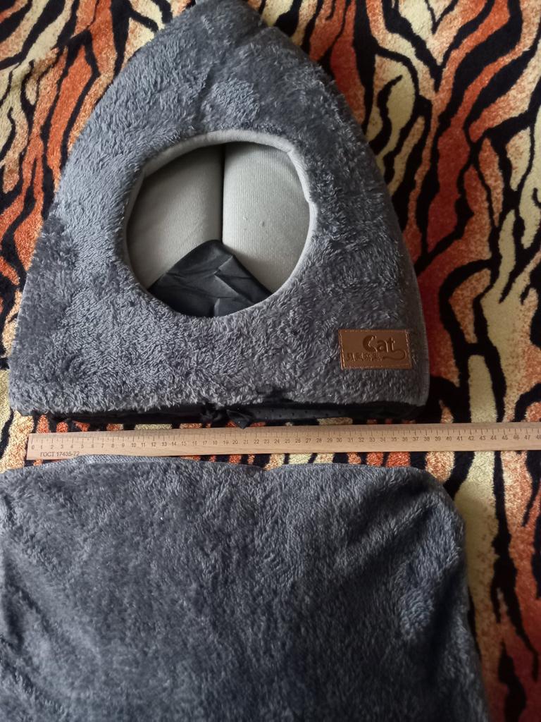 Гарна якість за таку ціну. Будиночок трохи помʼятий, але пошитий нормально. Розмір М досить тісний для киці 4 кг, але вона поміщається. Сама заходить і спить там.