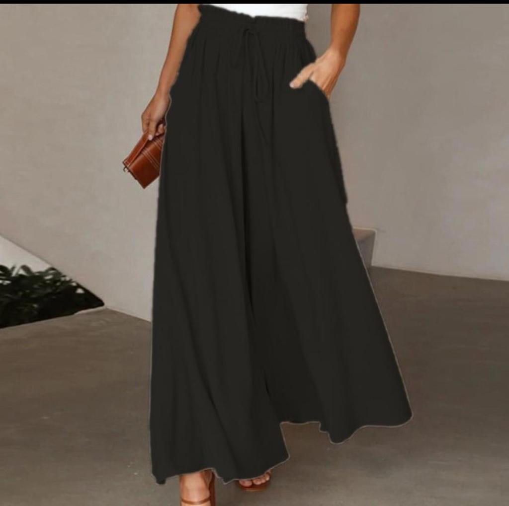 Жіночі однотонні штани на еластичному поясі Широкі брюки з високою талією, довгі кюлоти
