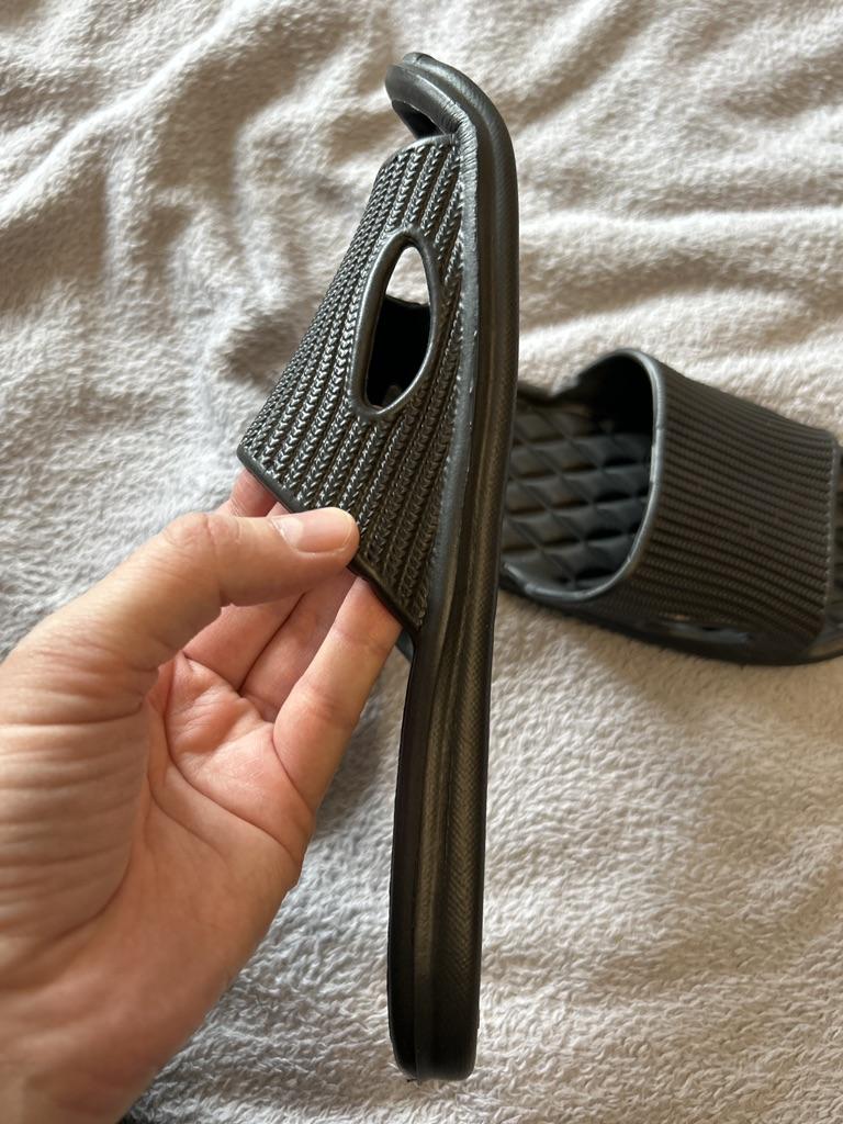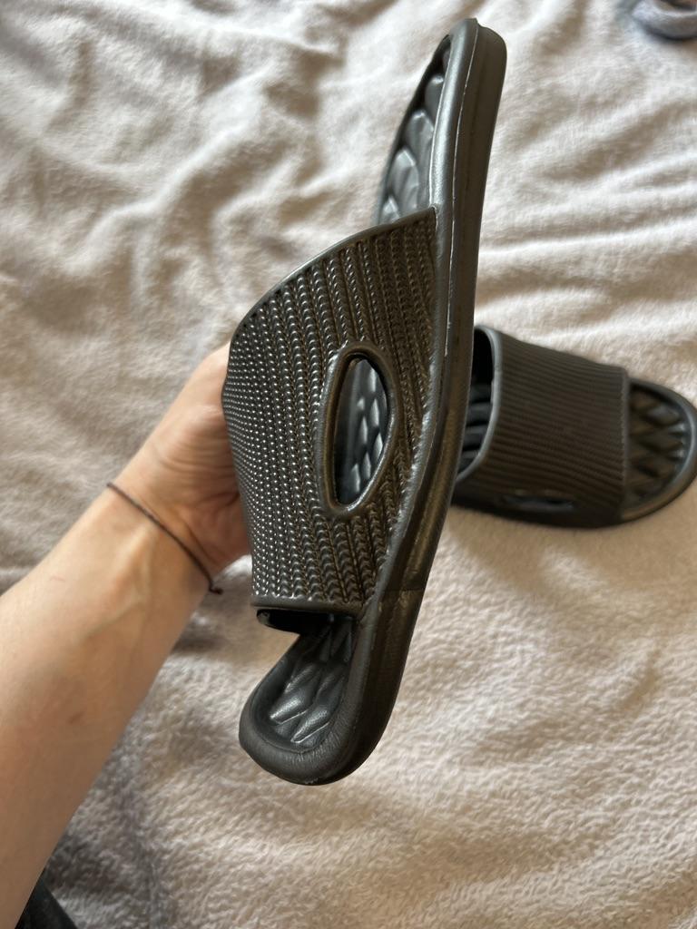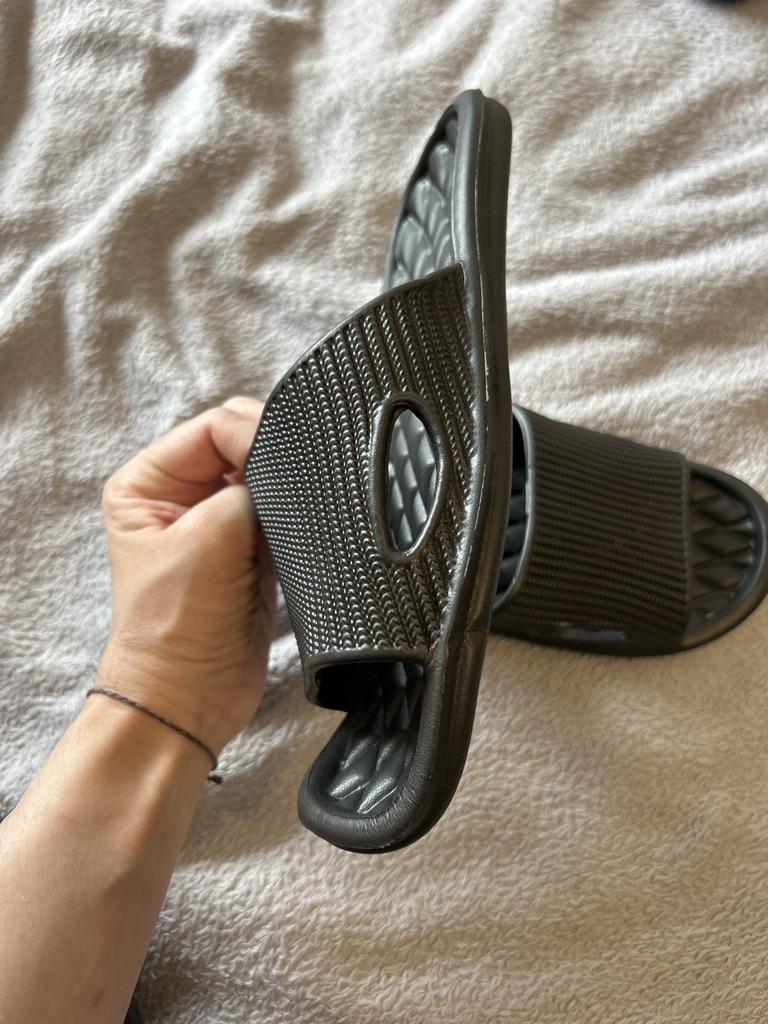 Тапочки легенькі, підошва тоненька, на середню і широку ногу. Розмір 40-41 відповідає нашому розміру 39, 25,5 см.