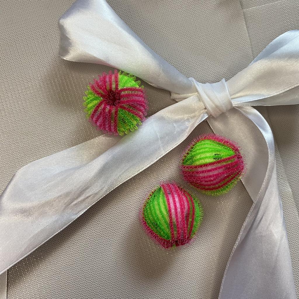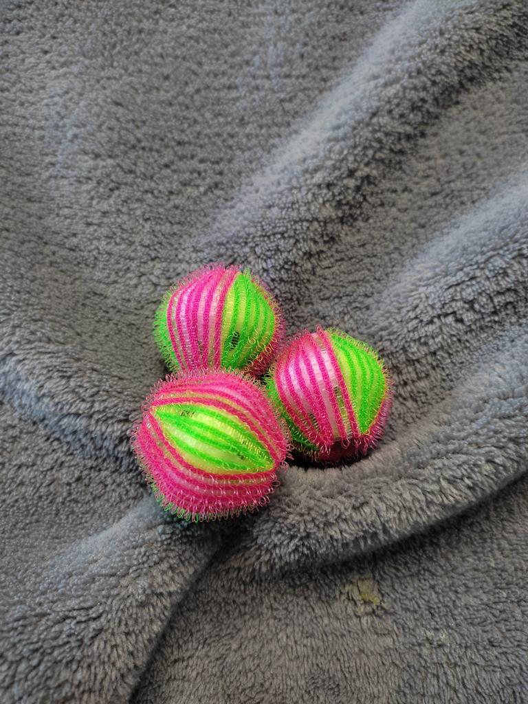 Кульки для прання Кульки виготовлені з матеріалу, схожого на застібку-липучку, Вони мають особливу поверхню, покриту дрібними гачками з поліпропілену. Збирать на себе волосся, ковтунці, ворс, нитки, пух під час прання, запобігаючи засміченню вашої пральної машинки. Періодично після після кількох циклів прання очищайте ці кульки від налиплих на них засмічень. Для кращого результату потрібно докупити ще один такий набір.