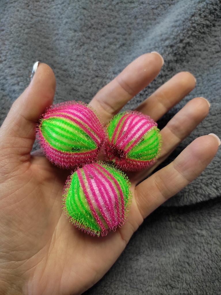 Кульки для прання Давно хотіла собі придбати такий девайс. І нарешті вони в мене) в відгуках пишуть що потрібен ще один такий набір для якісного результату. Та я ще не використовувала тому точно сказати не можу Замовила для таких потреб: збирання ворсу волосся ( в мене всі речі в волосах тому дуже надіюсь допоможе) . Після декількох стірок потрібно їх очищати від сміття налипшого) Дякую, рекомендую 💕🫶