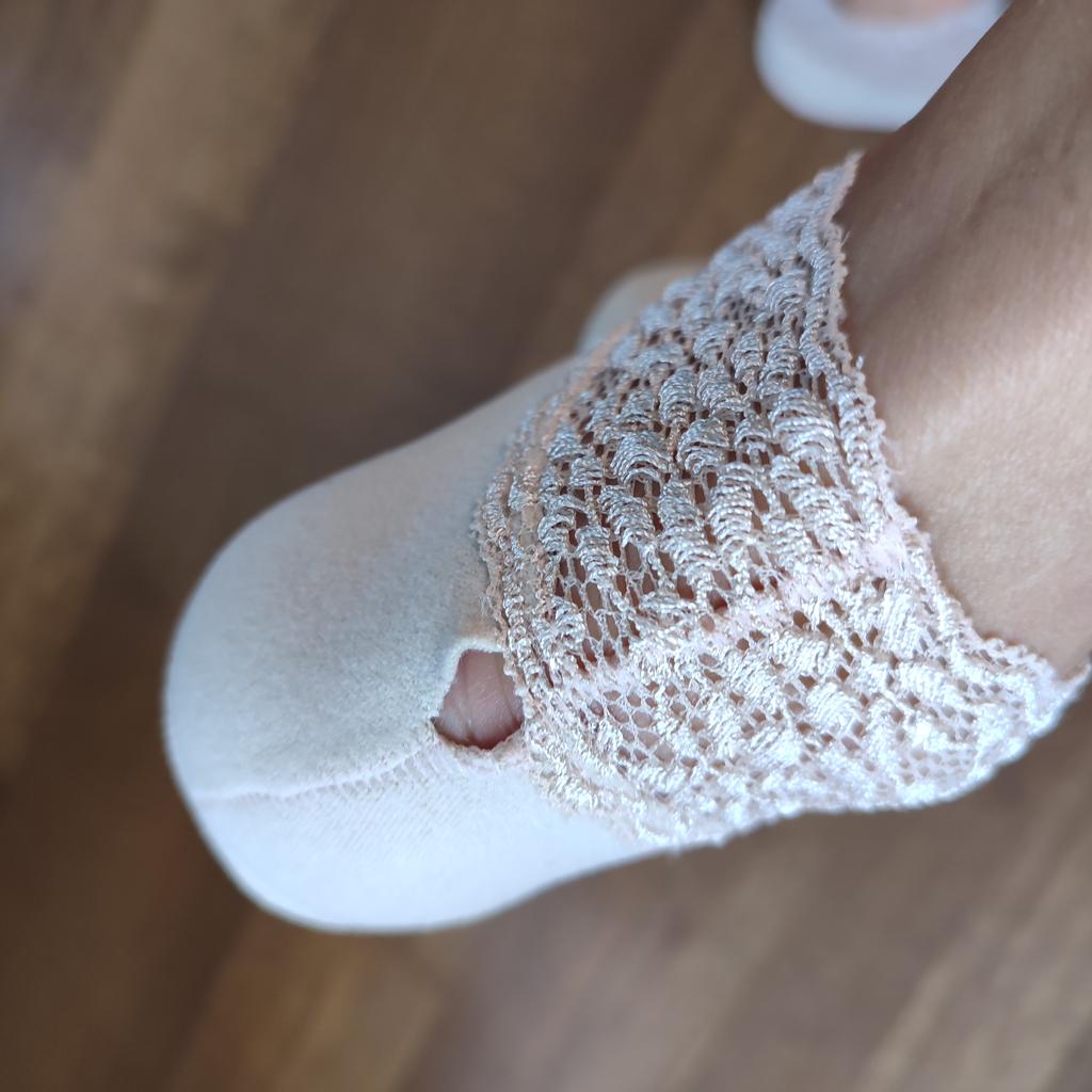 Дуже мʼякенькі тепленькі шкарпеточки . На підошвах мають силіконові квіточки в місці під пальцями. Мереживо розтягується добре. На мої середні по товщині ноги одяглися тугенько. Можливо у кого товсті ноги то будуть погано вдягатися, але всім іншим рекомендую. 10/10.