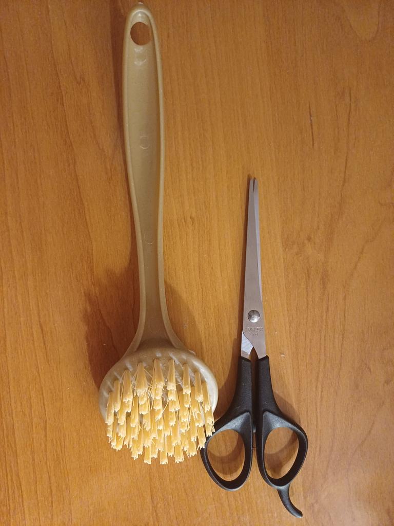 Замовила щітку як на картинці, а отримала це.... На фото також ножиці, щоб всі могли оцінити розмір. Як на мене, різниця з заявленим колосальна.
