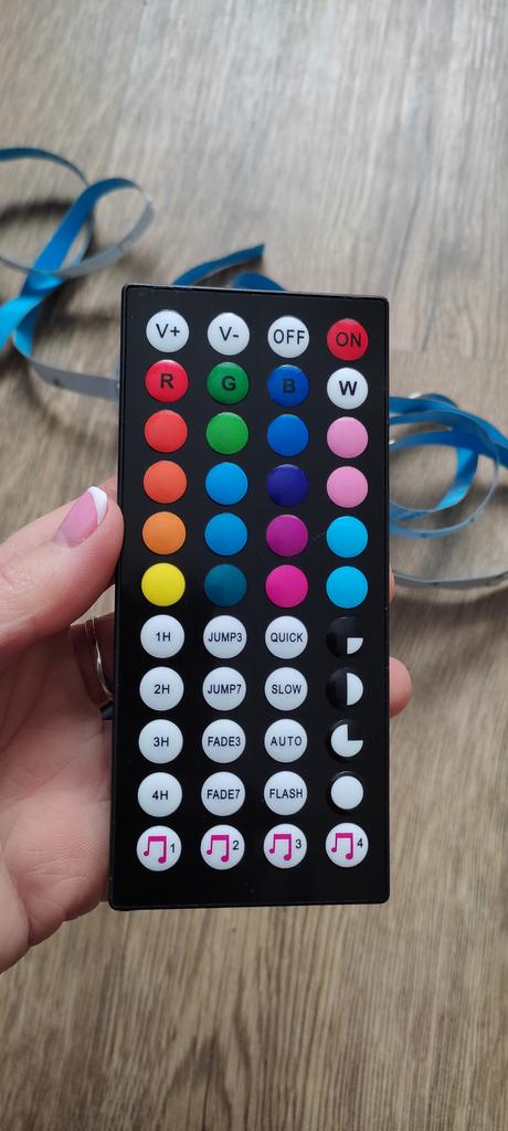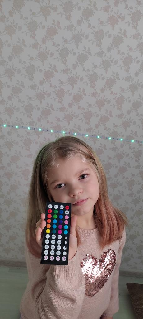 Самоклеюча світлодіодна стрічка Я вибрала варіант із пультом( продавець дає можливість вибору з пультом або без,а також можна обрати потрібний розмір) 🎀 Клеїти легко і міцно тримається. На пульту багато різних кольорів і режимів. Для оформлення кімнат чудовий варіант Особливо гарно для дитячої кімнати. Товар чудовий 👍