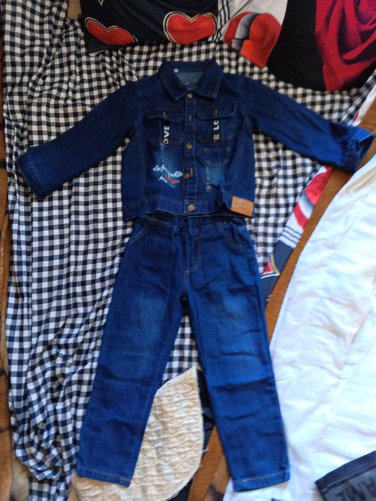 Дитячі модні джинсові костюми з двох частин для хлопчиків, повсякденне пальто з принтом + джинси
