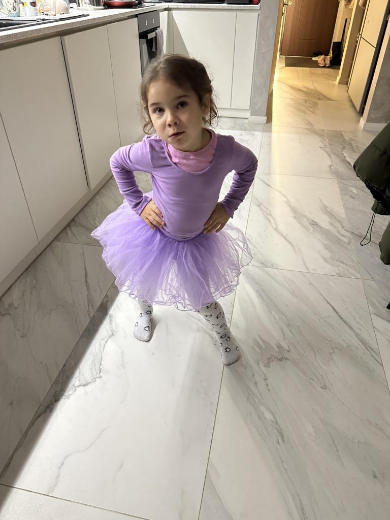 Багатошарова спідниця-пачка з довгим рукавом і круглим вирізом для дівчаток з еластичним поясом для танцювального балету