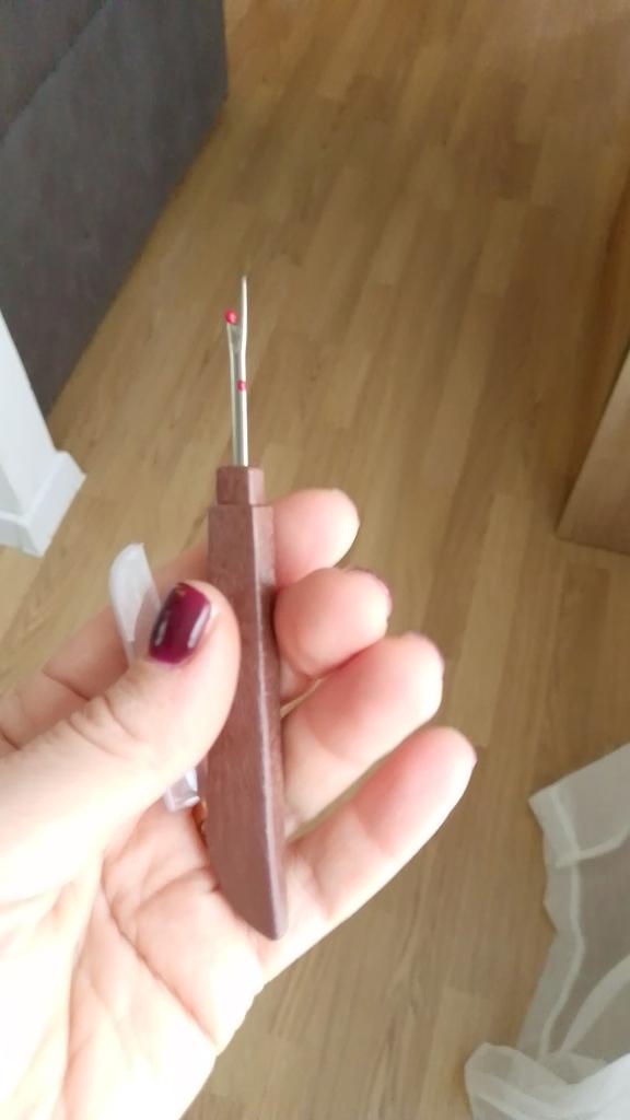 Ручка пластмасова, виглядає як дерев'яна. Ще не пробувала у використанні. Замовила один - прислали два. Дай Вам бог здоровлячка!:)