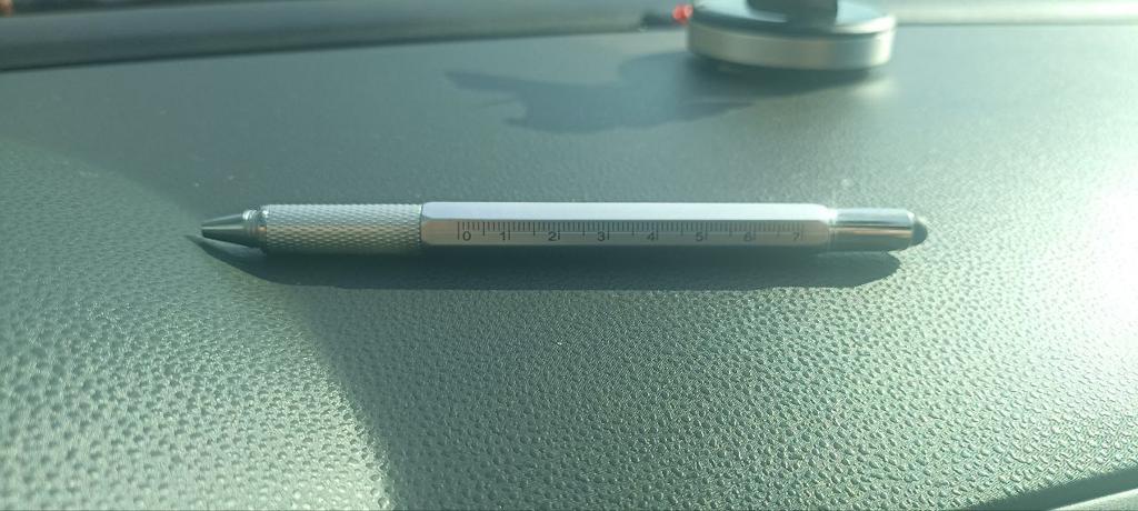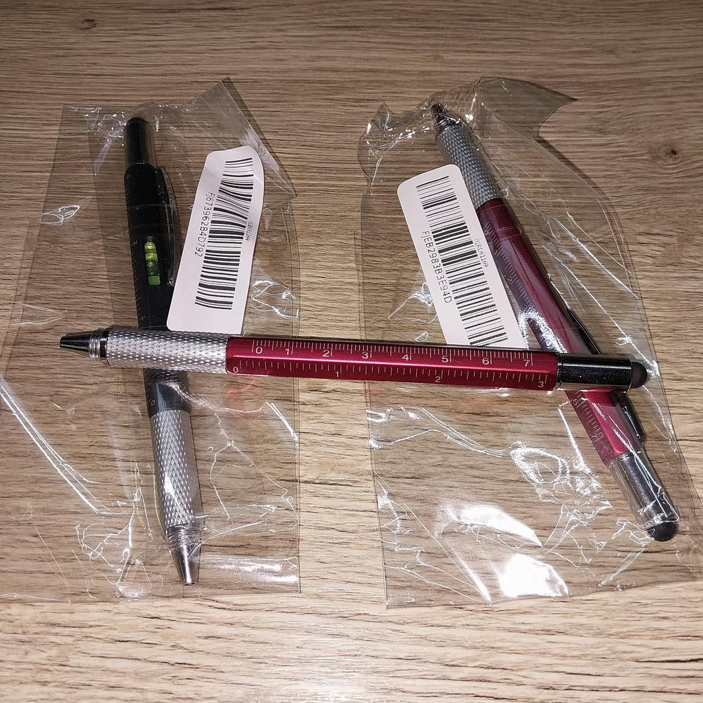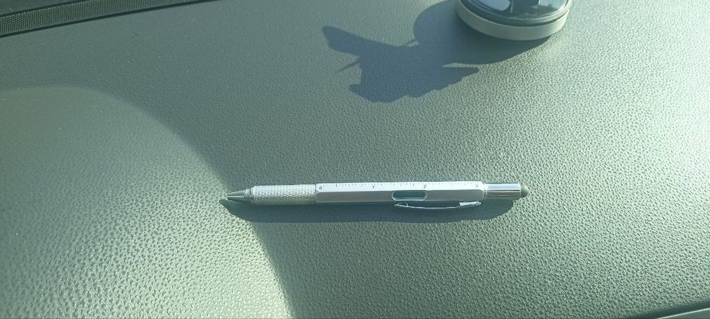 Ручка важка, ніби металева, зверху є стилус і можна натискати на телефоні ним, всередині є насадка для викрутки плоска і хрестовидна. Сама ручка пише м'яко, приємно, але ще не розібралась як змінити заряд якщо закінчиться чорнило. Збоку є водяний рівень і насічки в сантиметрах що дозволяє виміряти щось невелике, також ручка не ковзить в пальцях та не прокручується, буде зручно користуватись як викруткою так і ручкою.