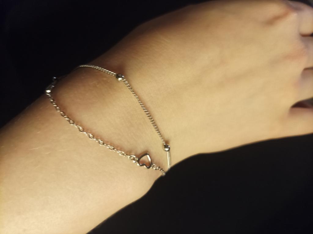 Срібний браслет із стерлінгового срібла S925 Браслет із солодким коханням для жінок, двошаровий дизайн, кругла намистина, порожнистий браслет у формі серця, регульований