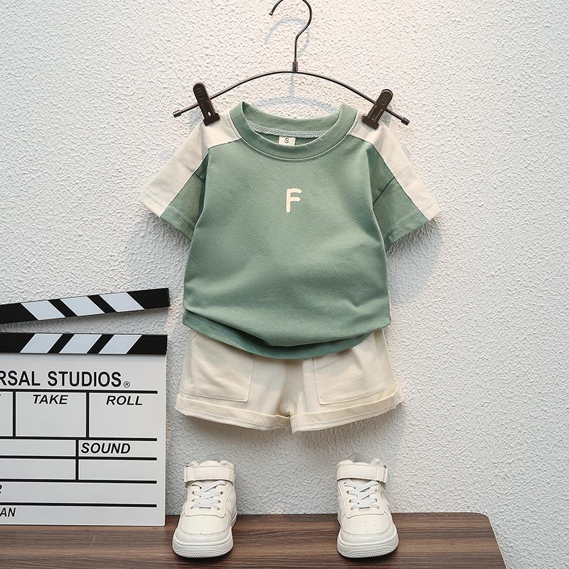 Нові літні комплекти одягу для хлопчиків, модні бавовняні футболки з літерами + шорти з інструментами, 2 предмети, дитячі костюми для немовлят Спортивний костюм