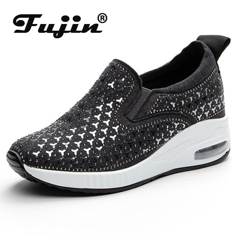 Fujin 6cm Новинка 2024 року на синтетичній платформі Танкетка Весна Літо Зручне модне взуття високого бренду Масляні кросівки Повсякденні туфлі-човники