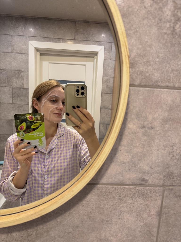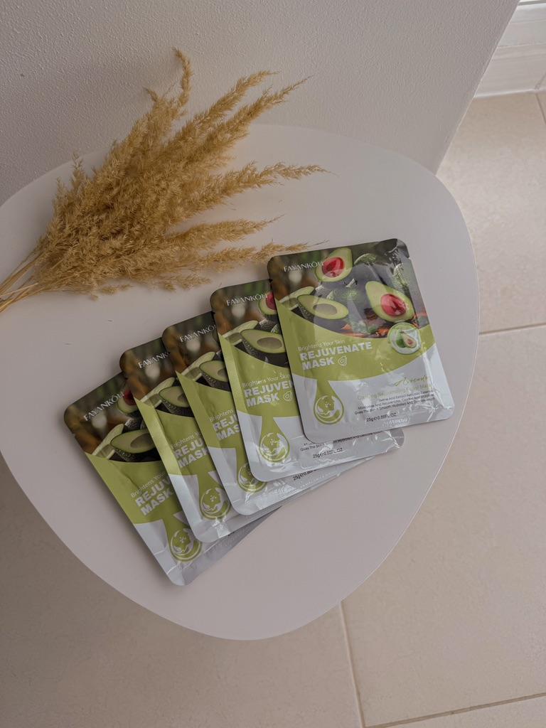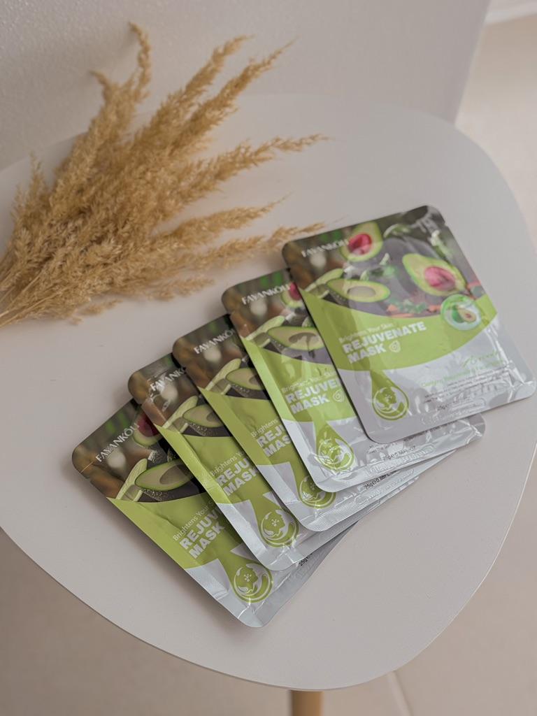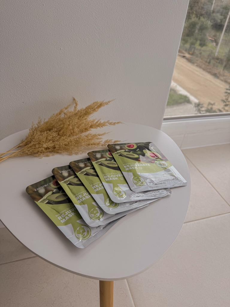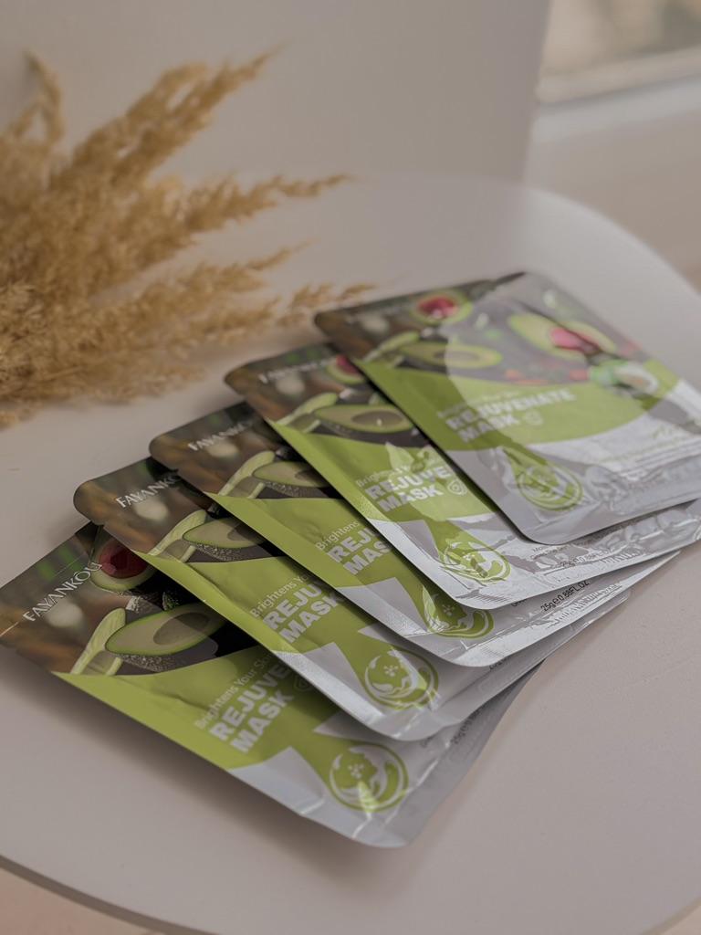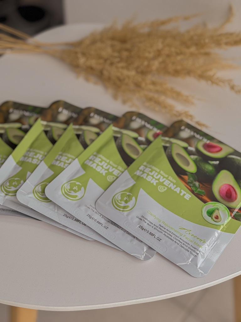 Набір масок для обличчя😊 Маска добре просочена і при вилученні з неї буквально капає Сама есенція прозора. За консистенцією схожа на рідкий гель. Обрала з авокадо (5шт) для зволоження та живлення шкіри. Після маски шкіра мʼяка та ніжна. Вона добре зволожена. Алергічної реакції ця маска у мене не викликала