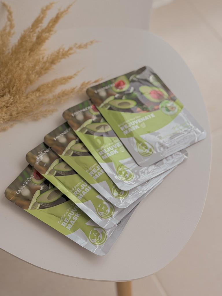 Набір масок для обличчя з авокадо 🥑💚 від бренду FAYANKOU 5 шт Маска добре зволожує та живить шкіру. Після використання маски шкіра виглядає більш пружною та доглянутою. Спосіб застосування: Відкрийте упаковку та акуратно дістаньте з неї маску. Розгорніть її. Потім прикладіть до обличчя відповідно до отворів та переконайтеся, що маска щільно прилягає до шкіри і на ній не утворилися повітряні бульбашки. Залиште на 15-20 хвилин, після чого видаліть тканинну основу, а залишки есенції кінчиками пальців легенько втріть в шкіру обличчя та шиї. Не варто тримати маску на обличчі надто довго, щоб уникнути пересихання тканинної основи. Тканинна маска - це чудове рішення швидкого та ефективного догляду за шкірою 😉 Маска щедро просякнута есенцією, тож її залишки можна використати на декольте, або покласти в холодильник і наступного дня використати як звичайну есенцію для обличчя 💧. Масочки моїй шкірі сподобалися ☺️🥑 Якщо відгук був корисний ставте вподобайку 💚❤️💚 Товар отримала за 21 день в об'єднаній посилці 🚚 Трек відслідковувався повністю. Про прибуття у пункт видачі сповістили sms 📲. Пакування: повітряно-пухирчатий пакет. Всім вдалих покупок та швидких доставок 🛍️☺️🚀🌿 І пам'ятайте, що кожна жінка зірка тож сяйте яскравіше 🌞 ❤️.