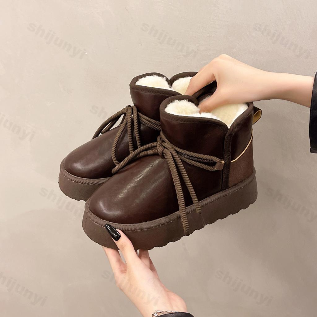 Shoes for Women Boots 2025 New Round Toe Luxury Designer Winter Snow Boots Women Footwear Ladies Fashion Lacing Sports Booties