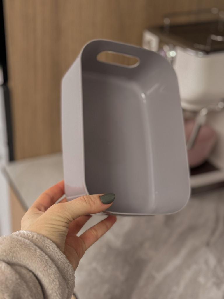 Побутовий пластиковий ящик. Колір: світло-сірий. На даний момент у продавця лише цей колір. Ящик невеличкий: Висота приблизно 7 см; Довжина 20 см Ширина 14 см. Ящичок має просту та лаконічну форму. Може при такому мінімалізмі він і виглядає скромно, але у цьому його перевага. По-перше він добре вписуються в будь-який інтер'єр, по-друге за ним легко доглядати, на його миття йде мінімум часу. Це особливо актуально якщо такий ящик використовується на кухні чи в ванній кімнаті. Ящик чудово підходить для зберігання косметики, спецій, різного дріб'язку. Ящик подобається, купую не вперше. Якщо відгук був корисний ставте вподобайку ❤️ Товар отримала за 18 днів в об'єднаній посилці 🚚. Трек відслідковувався повністю. Про прибуття у пункт видачі сповістили sms 📲. Пакування у ящичка дуже скромне - лише поштовий пакет і все. Як на мене це не дуже добре. Хоча мій товар приїхав ціленьким без пошкоджень, не дивлячись на те що язичок виготовлений із пластику середньої щільності. Товар без браку та стороннього запаху. Всім вдалих покупок та швидких доставок 🛍️☺️🚀🌿 Затишку та благополуччя Вам та Вашим родинам 🏡 ❤️ PS: потрібні промокоди? Тоді обов'язково завітайте до мого Телеграм-каналу Olena.joom.thebest (t.me/olenajoom), де я регулярно публікую промокоди, щоб ваші покупки були ще більш вигідні 😘🛍️.