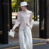 Жіноча повсякденна смугаста сорочка з V-подібним вирізом, весна-осінь, сорочка з довгим рукавом, офісна модна тонка подвійна шовкова блуза