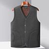 Залишайтеся в теплі та комфорті в холодні місяці з цим чоловічим зимовим бавовняним жилетом, розробленим спеціально для чоловіків середнього та похилого віку.. Цей жилет має вільний крій і вишуканий V-подібний виріз, створюючи образ, який легко доповнити іншим одягом і який підходить для будь-якої події.. Застібка на ґудзики додає класичного штриху, а утеплена товщина забезпечує оптимальне тепло.. Виготовлений з міцного поліестеру, жилет має однотонний візерунок для позачасового стилю.. Підкладка з унікального хутроподібного матеріалу для додаткового комфорту, це незамінна річ для будь-якого зимового гардеробу.