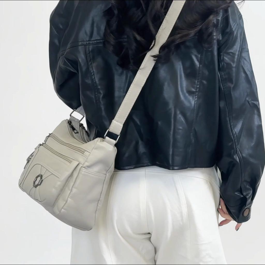 Вінтажна сумка через плече для жінок середнього віку, м'яка шкіряна багатошарова сумка через плече