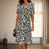 Жіноча мода з витонченим леопардовим принтом, літо, весна, повсякденні сукні з короткими рукавами та круглим вирізом