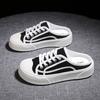 Lazy Person Wearing Half Slippers, Women Wearing Breathable Canvas Shoes Outside, Stepping on Thick Soled Sponge Cake White Shoes