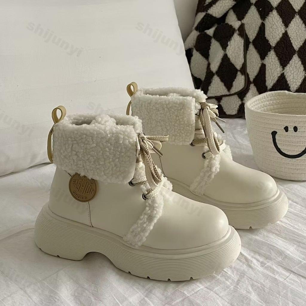 Водонепроникні снігові чоботи з ПУ шкіри Жіночі модні черевики на шнурівці з масивною платформою Бавовняні черевики Жіночі 2024 Зимові Товсті Плюшеві Теплі Черевики до щиколотки