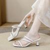High-heeled cool slippers for women's outer wear 2025 new French square-heeled slippers for women's summer fashion