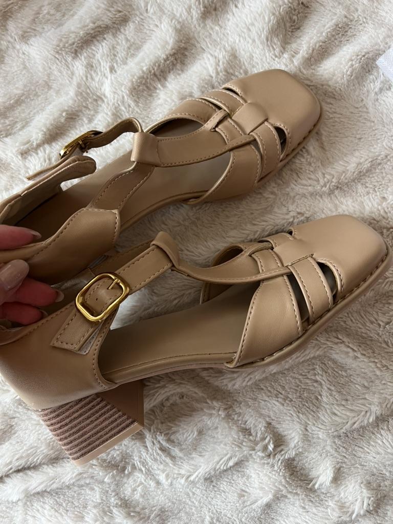 Жіночі босоніжки на стійкому підборі, виготовлені з штучної шкіри кольору візон. Класичний дизайн завжди актуальний і стане незамінним елементом гардеробу. Підошва — блок, каблук широкий, обтяжний. Висота каблука 6,5-7 см. Розмір 40 підходить на ступню 25 см. є трішки запас. Рекомендую.👍👍👍