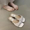 Summer Women's Butterfly-knot Lace Women Slippers Casual Thick Low Heel Dress Street Style Slides