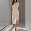 Жіноча мода, літо, весна, суцільні повсякденні сукні з коротким рукавом і коротким рукавом із коротким вирізом із середньою лінією талії.