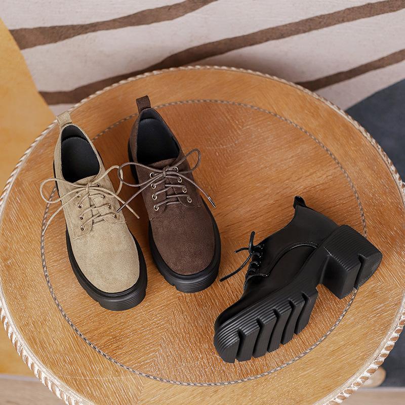10Cm thick-soled high-heeled apricot small leather shoes for women's spring and autumn new models, lightweight inner height-increasing lace-up