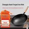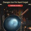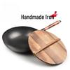 Кований вручну чавунний вок з антипригарним покриттям, плоским дном та дерев'яною ручкою