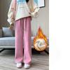 Флісові штани з широкими штанинами Жіночі Осінньо-зимові З високою посадкою Вільні Такі, що стрункіть Прямі Вельветові Довжиною до підлоги Білі Повсякденні штани