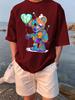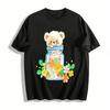 Little Bear Composed Of Flowers Printing T-Shirt Man Loose Cotton T Shirts Trendy O-Neck Casual Top Summer Streetwear