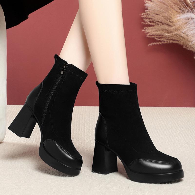 Модні жіночі чоботи товстий каблук квадратний носок короткі чоботи жіночі весняно-осінні одинарні чоботи м'яка шкіра тонкі чоботи середній каблук черевики Мартін жіночі